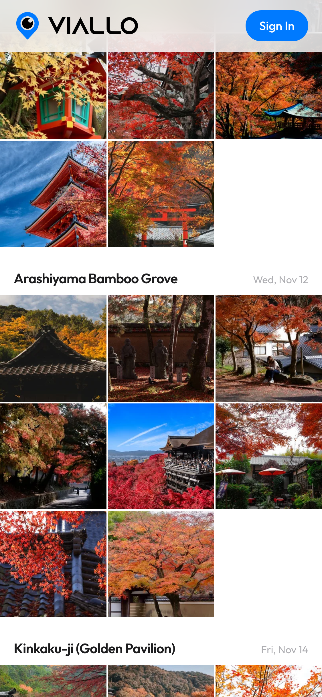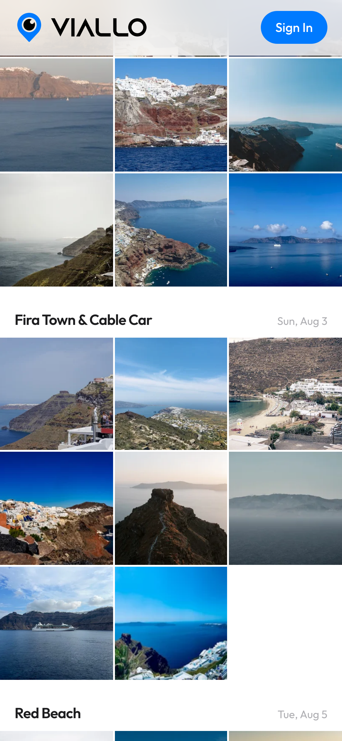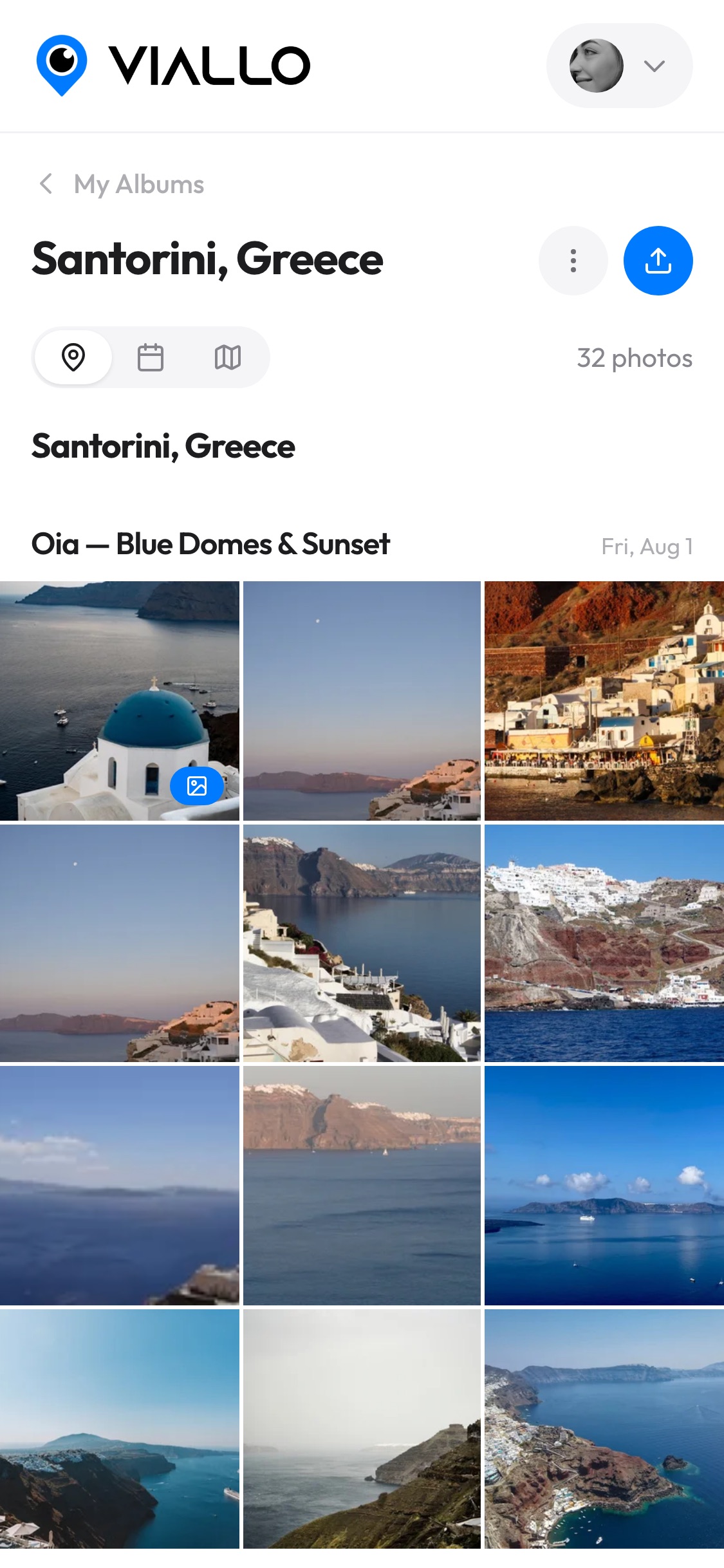 Viallo reads GPS data from your photos and groups them into places and visits automatically. Each place gets a name via reverse geocoding. You can also browse by date or explore everything on an interactive map.